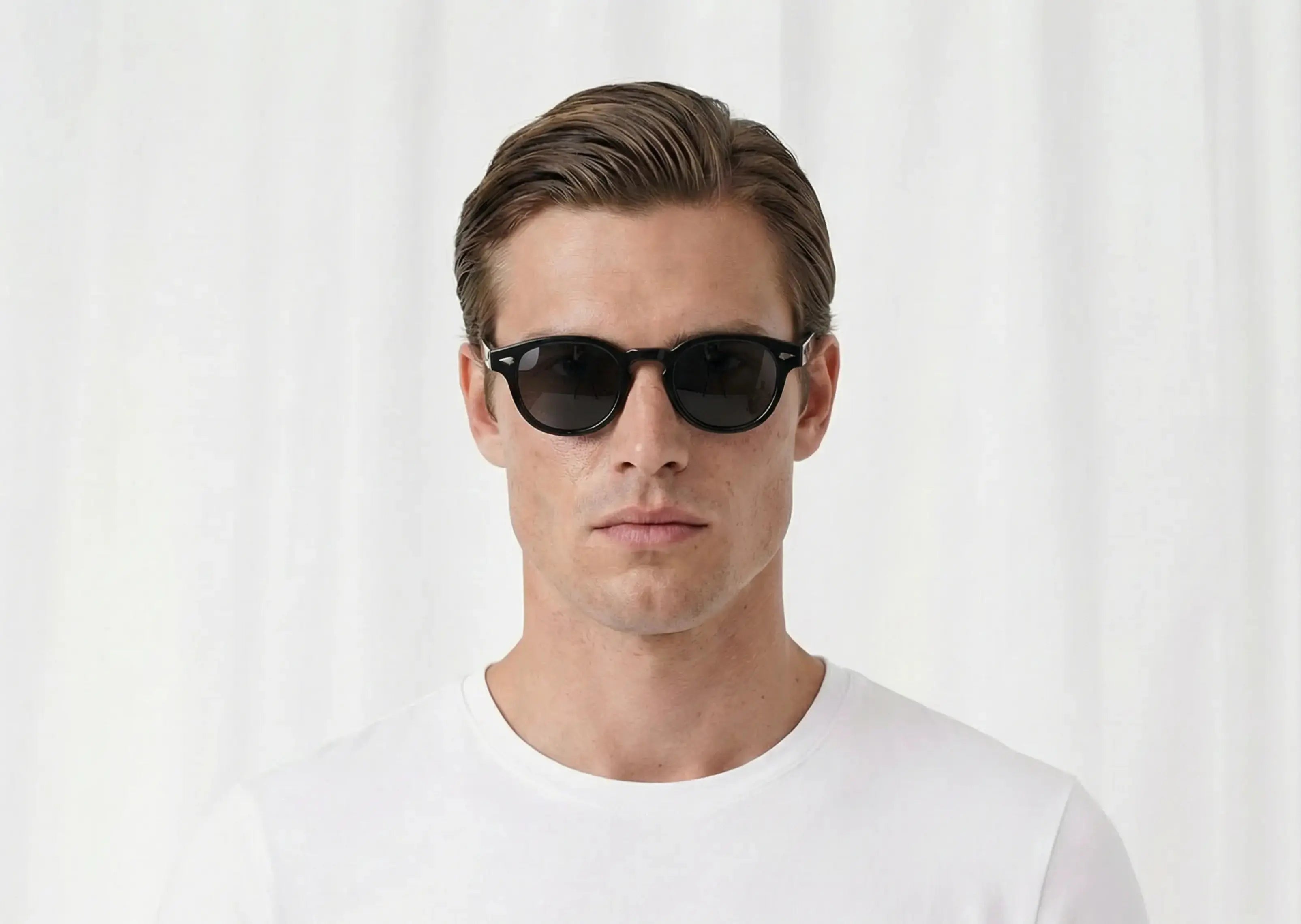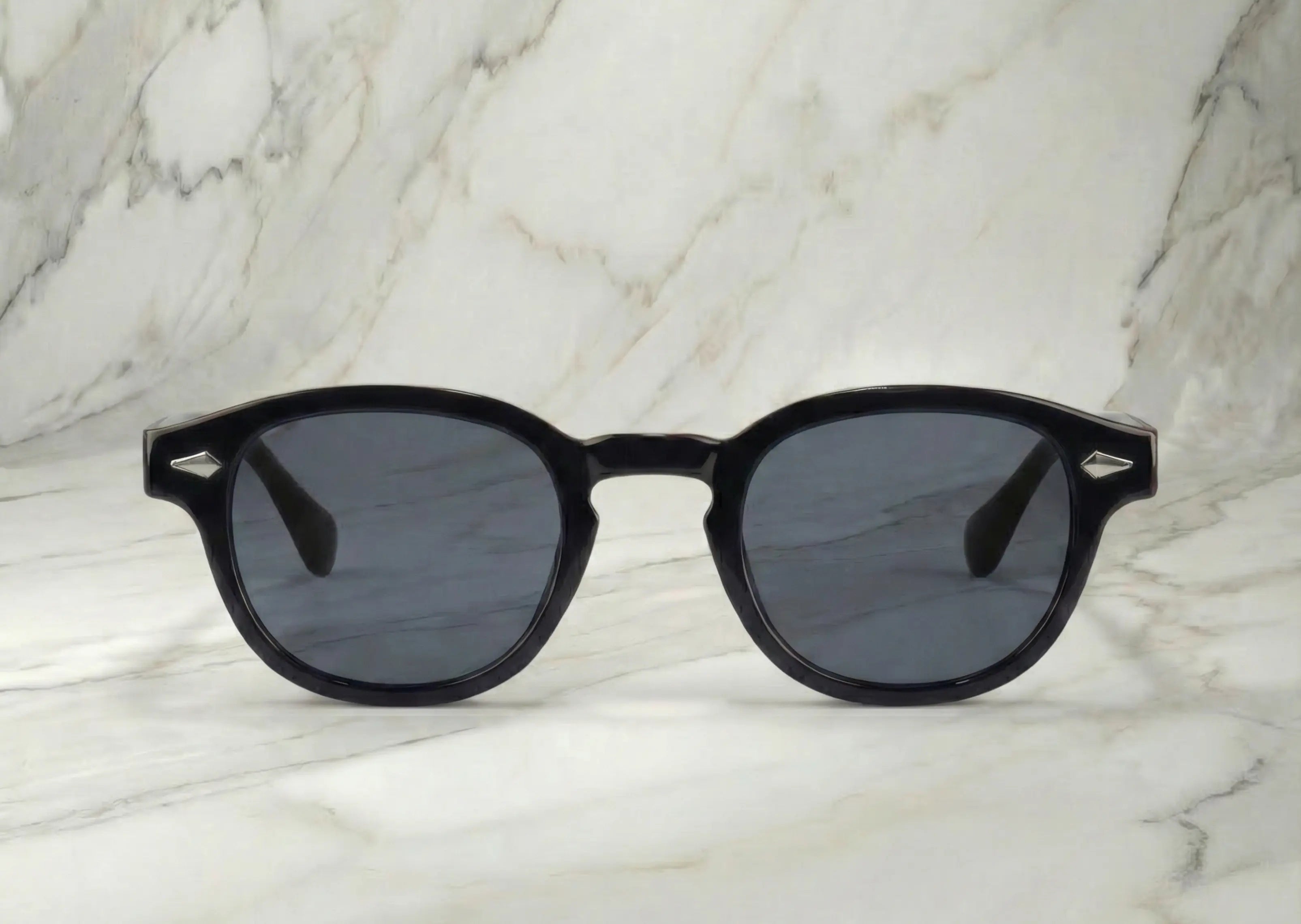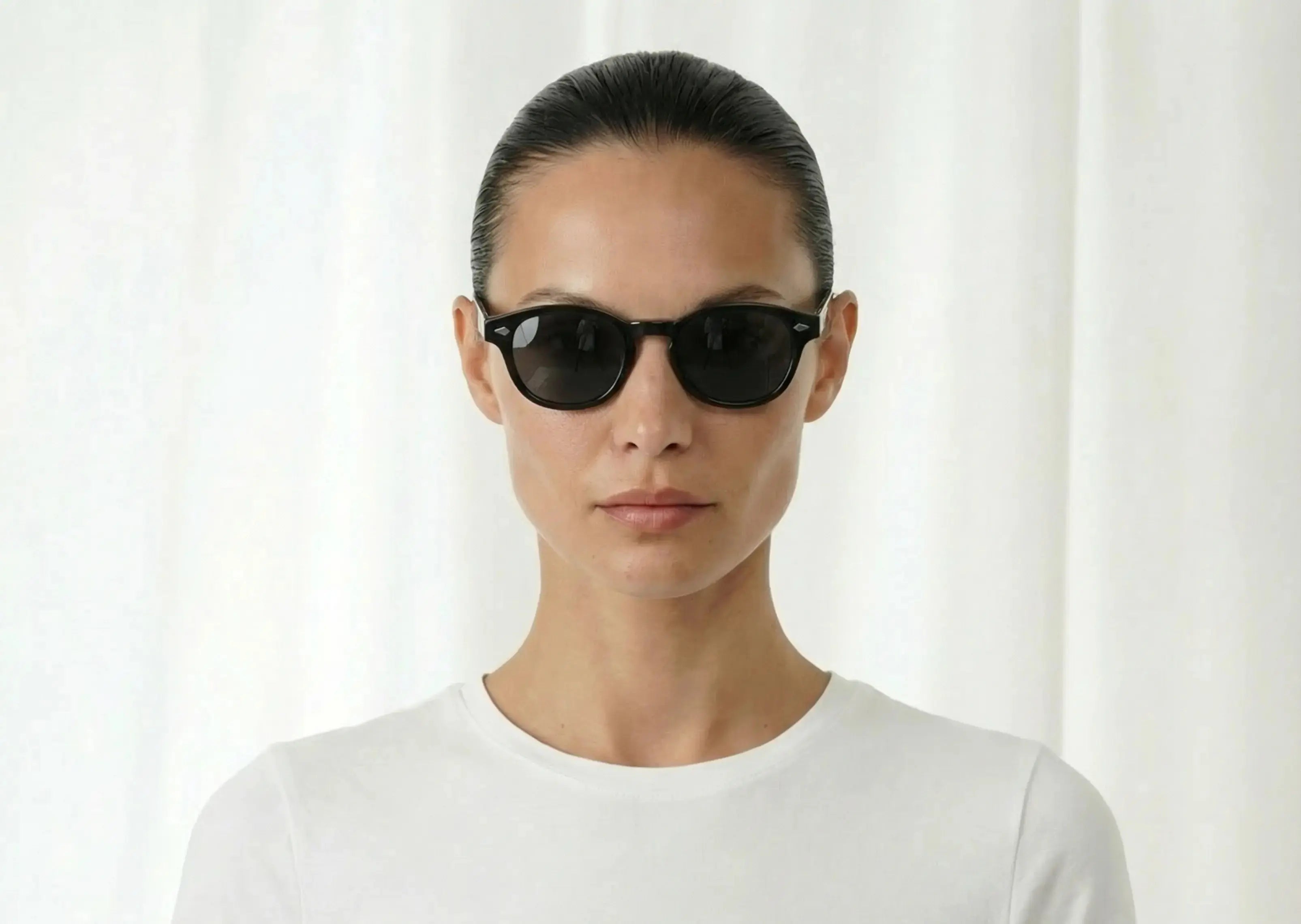 MONACO, une monture noire profonde, associée à des verres foncés, sobres et élégants.