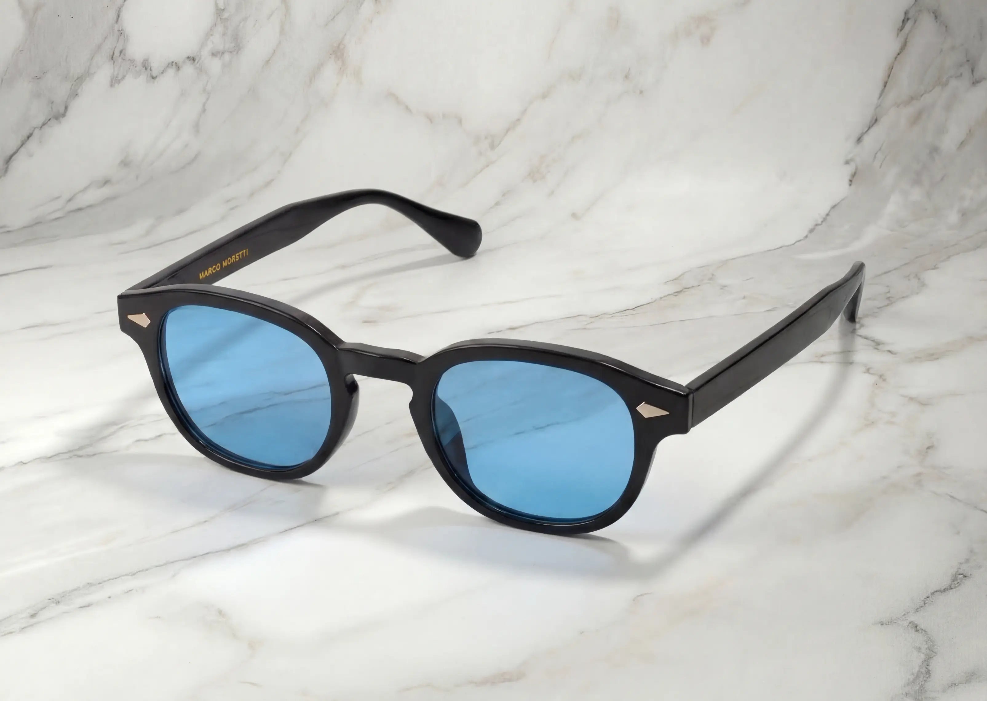MONTE-CARLO, une monture noire aux lignes nettes, associée à des verres bleus profonds.
