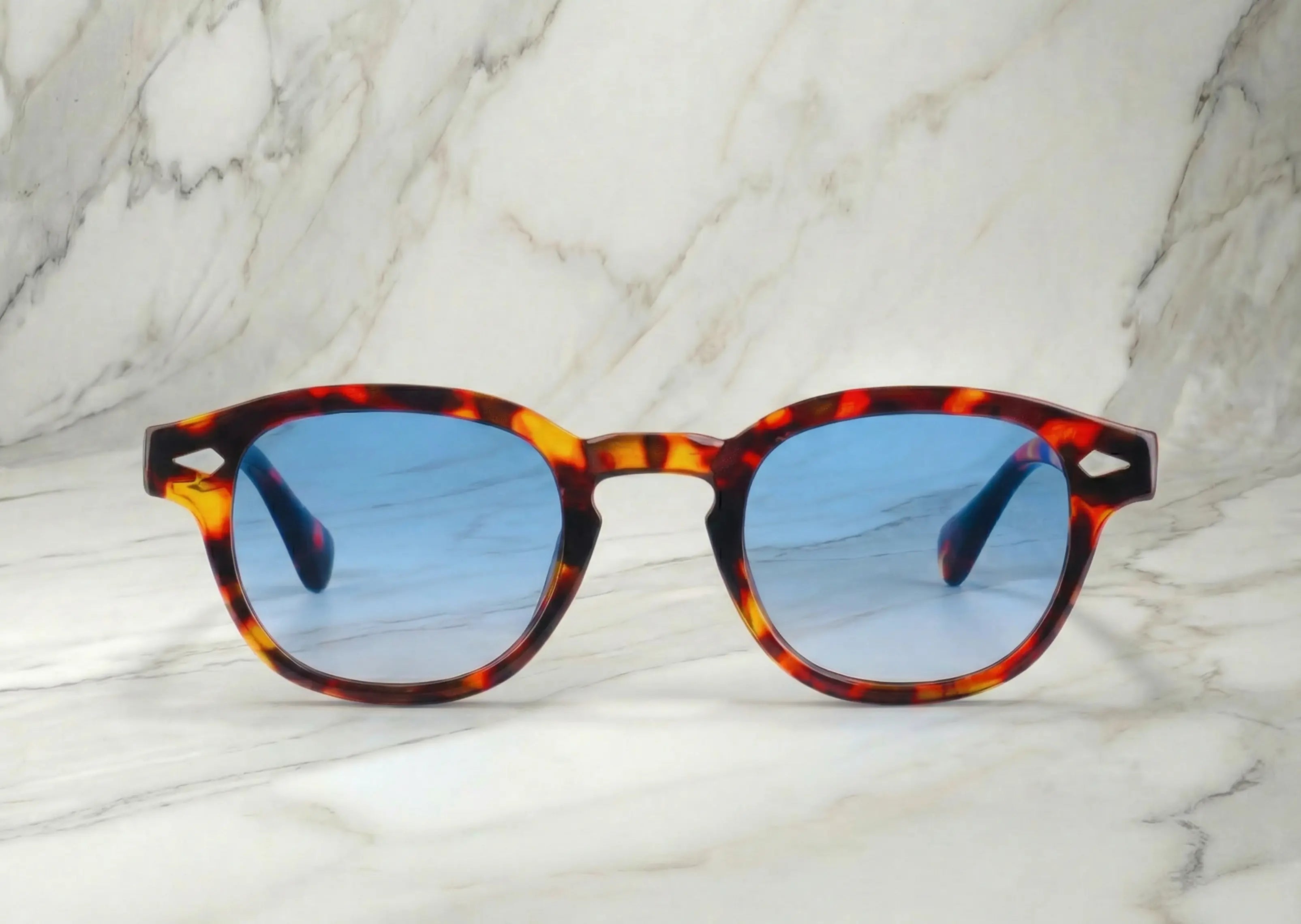 La monture transparente laisse passer la lumière et met en valeur le visage, tandis que les verres bleutés adoucissent le regard et donnent cette sensation de calme, presque de vacances.